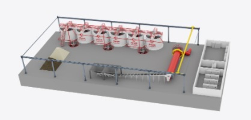 Sistem de amestecare și lot: Aceasta include silozuri pentru stocarea materiilor prime, cântarelor pentru o cântărire precisă și un mixer cu capacitate mare pentru crearea suspensiei.